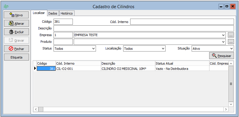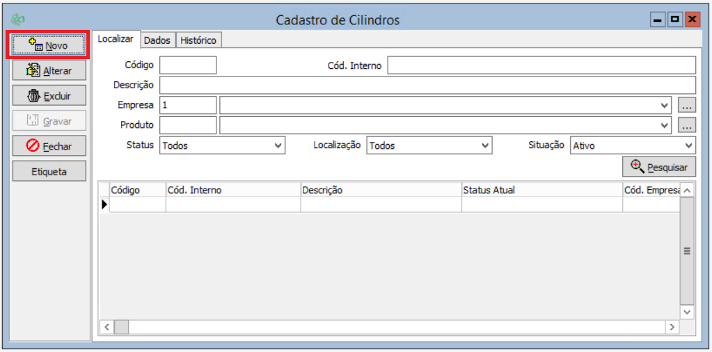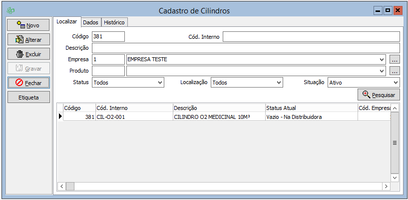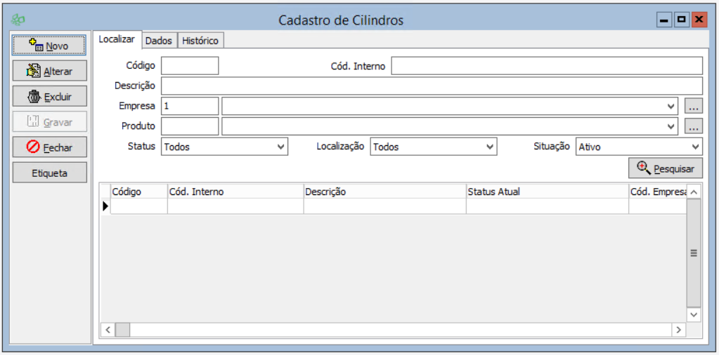 - Aba "Localizar": Para pesquisar e visualizar cilindros cadastrados
