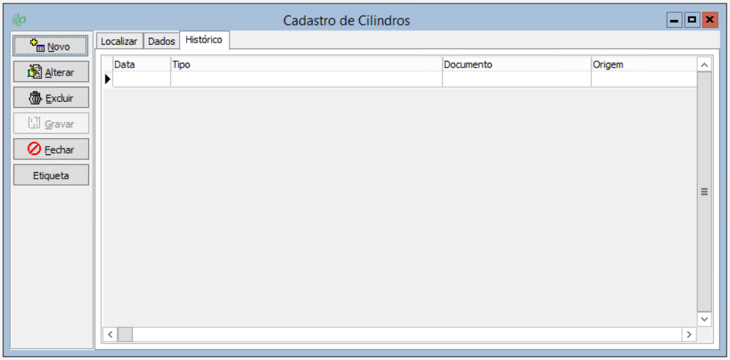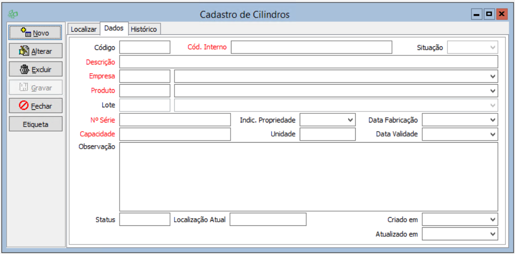 - Aba "Dados": Para cadastrar novos cilindros ou editar cilindros existentes