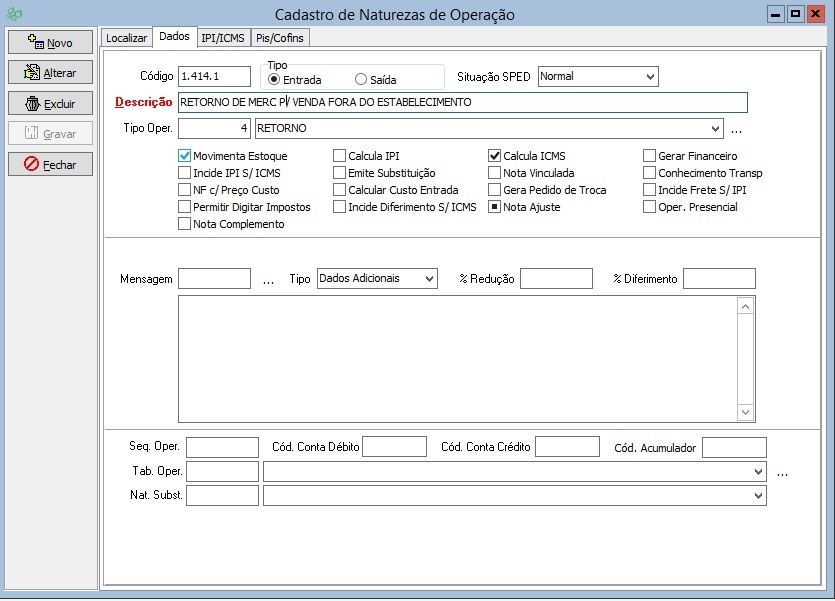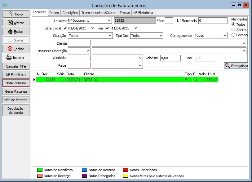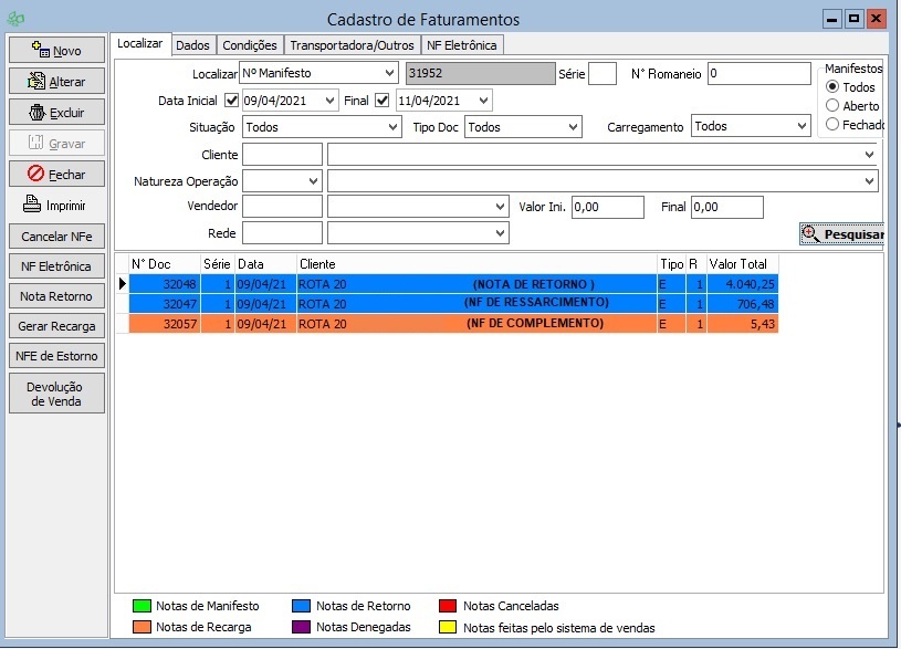 | Módulos Específicos | FATURAMENTOS - NOTA RETORNO MESMA CFOP MANIFESTO |