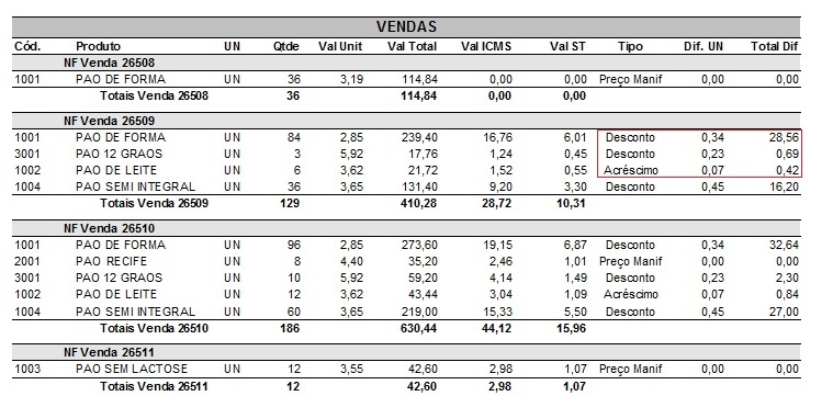 De acordo com os valores praticados nas vendas e seus respectivos impostos, o sistema irá gerar as notas necessárias para suprir as diferenças: