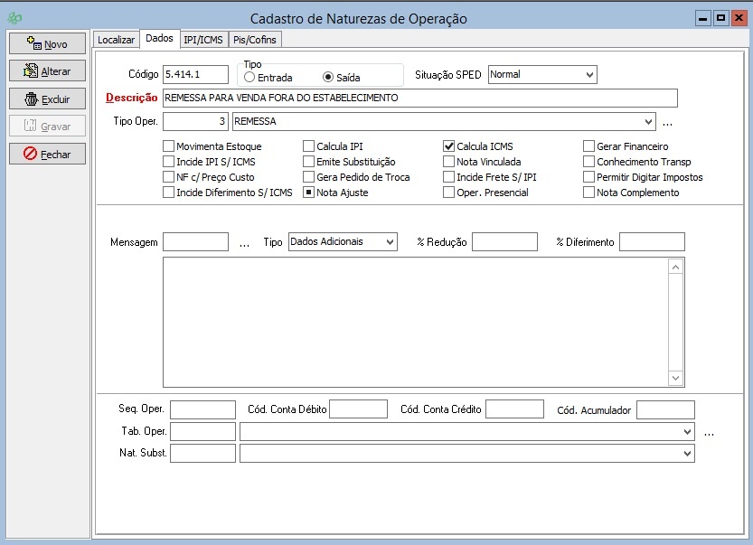 CFOP de Remessa para Venda Fora do Estabelecimento: