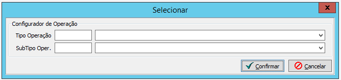Tipo/Subtipo de Operação, caso utilize o Configurador de Operações.