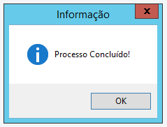Caso a parametrização selecionada esteja corretamente configurada, ao confirmar, o sistema exibirá a seguinte mensagem: