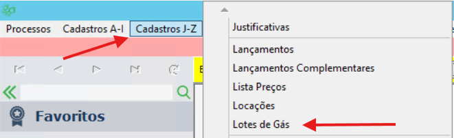 • Requer permissão: Cadastro de Lotes Gás