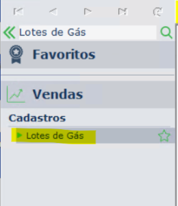 No menu lateral, pesquise por "Lotes de Gás"