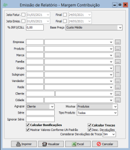 Utilizar essa opção diminui o valor do Faturamento Líquido, utilizado posteriormente no cálculo da margem de contribuição.